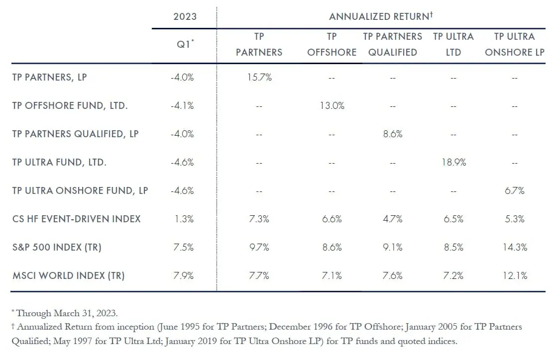 First Quarter performance was disappointing, in keeping with the past several quarters of losses that are inconsistent with the results we have delivered for the past 28 years. I am grateful for the patience and confidence shown by our investors during this period. As the largest investor in our funds, I look at the strength of our team and our process and am confident that together they will generate the outcomes you expect from us.