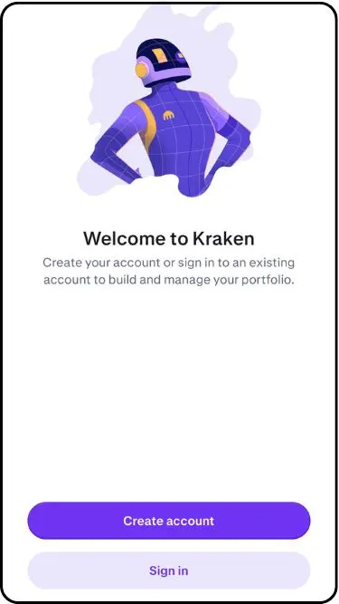 Firstly, Download Kraken from the Apple App Store or Google Play Store, and click ‘Create Account’. For this demonstration, we used an iOS mobile device.