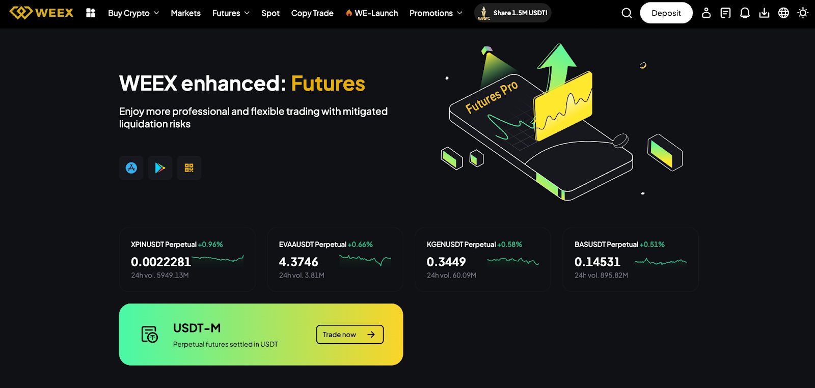 The Weex exchange focuses on speed, deep liquidity, and low trading fees, making it suitable for both short-term and long-term crypto trading. The platform also highlights Weex Futures Pro for users who want more control over leverage and trading strategies.