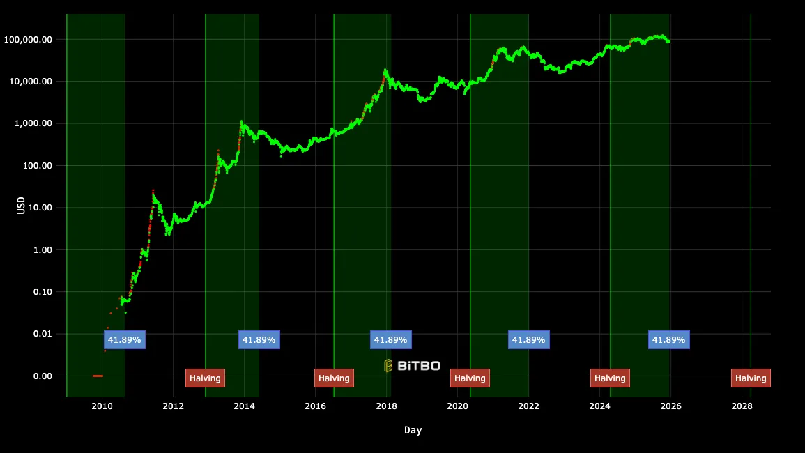 Fewer new coins can change how the market behaves when demand stays the same or grows. But the halving does not control everything, because price also reacts to sentiment and broader markets. Comparison of 2025 price action with historical post-halving years, we still see significant price moves.