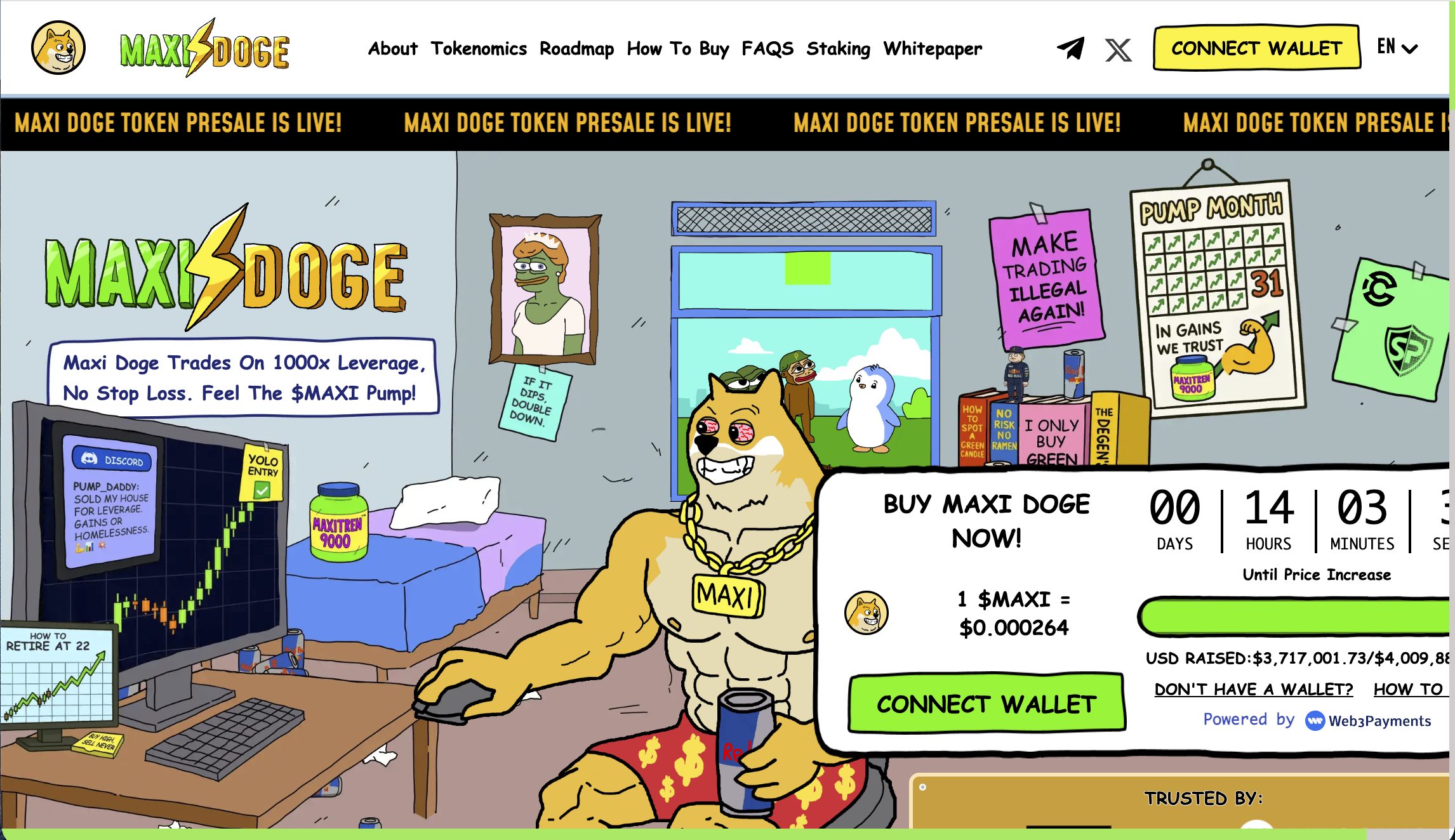 Maxi Doge ($MAXI) is a Doge-inspired meme coin that embodies a gym-addicted and high-leverage trading lifestyle. With dog-themed tokens showing strength in the latest crypto bull market, Maxi Doge offers an entry-level opportunity with its newly-launched ICO.