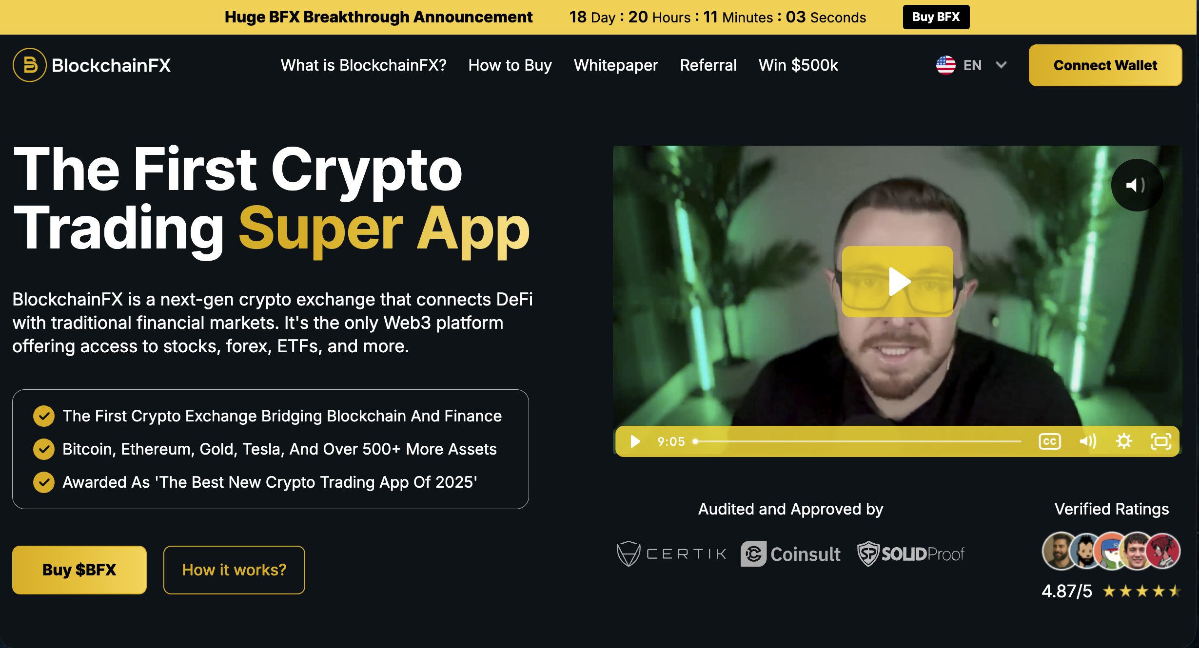 The BlockchainFX ($BFX) ICO, launched in March 2025, has already garnered over $11.5 million in token investments. It introduces the world’s first decentralized trading super app, where users can trade stocks, cryptocurrencies, ETFs, CFDs, and other instruments.