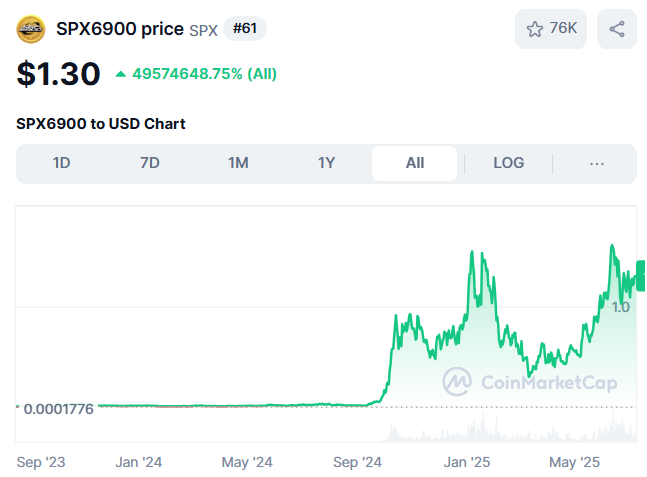 Buying SPX6900 with just $100 when it was trading at $0.01 means your cryptos would now be worth over $10,000. It is worth noting that not every token will copy SPX6900’s success story.
