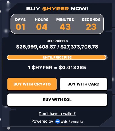The meme coin project is still in its early presale stages, with HYPER priced at just $0.013265 per token. Those who buy the ERC-20 token during the presale can lock up their HYPER and earn over 43% annual rewards.