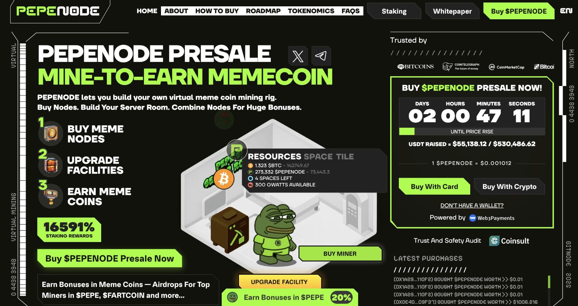 1. PEPENODE ($PEPENODE): Mine-to-Earn Memecoin With Built-In Deflation