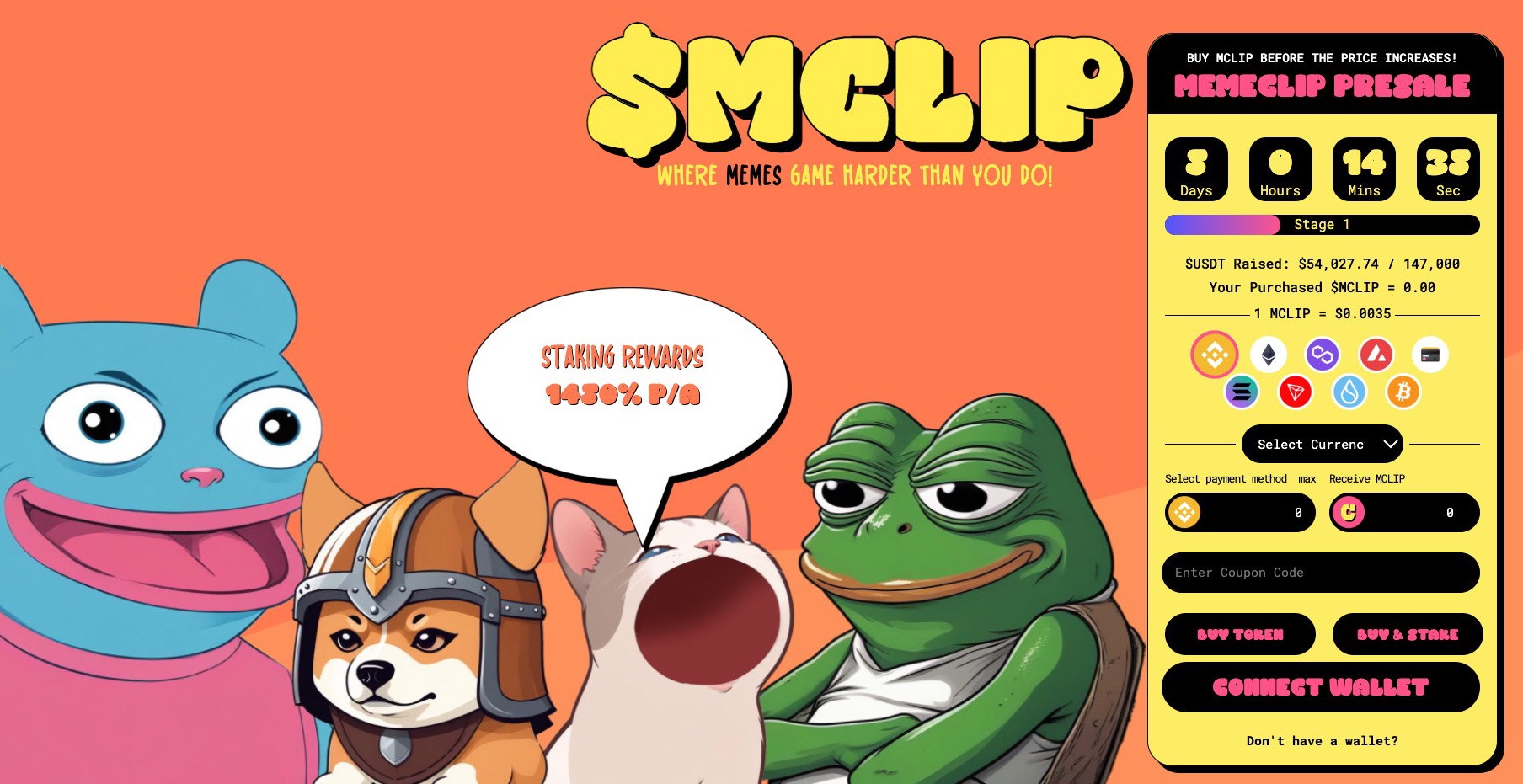 2. MemeClip ($MCLIP): Meme-fueled gaming platform with real crypto rewards