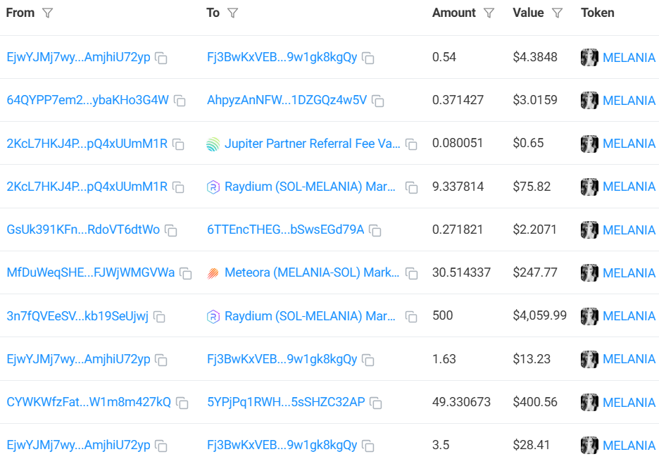 The cryptocurrency is also available on decentralized exchanges (DEx). Experienced users who wish to hold the tokens in their wallet can buy MELANIA on Jupiter, a popular DEX for SOL tokens.
