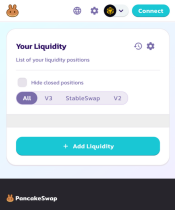 In the PancakeSwap app, go to Trade → Liquidity → Add Liquidity. You’ll see the V3 add-liquidity interface.