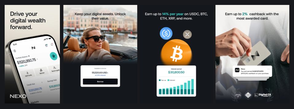 Nexo functions as a digital assets wealth platform, offering services such as earning interest, borrowing against crypto, trading, and spending with a single account. It combines Flexible and Fixed-term Savings with daily payouts and headline rates up to 14 percent, depending on asset and tier.