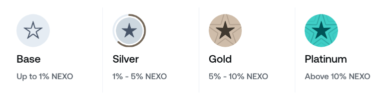 Nexo loyalty tiers are based on how much NEXO you hold as a share of your portfolio. As you move up, you can boost Earn APYs, cut borrow APRs, raise card cashback, and increase fee-free withdrawals.