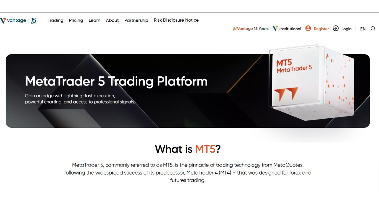 7. Vantage: Popular UK-licensed MT5 broker with commission-based raw accounts