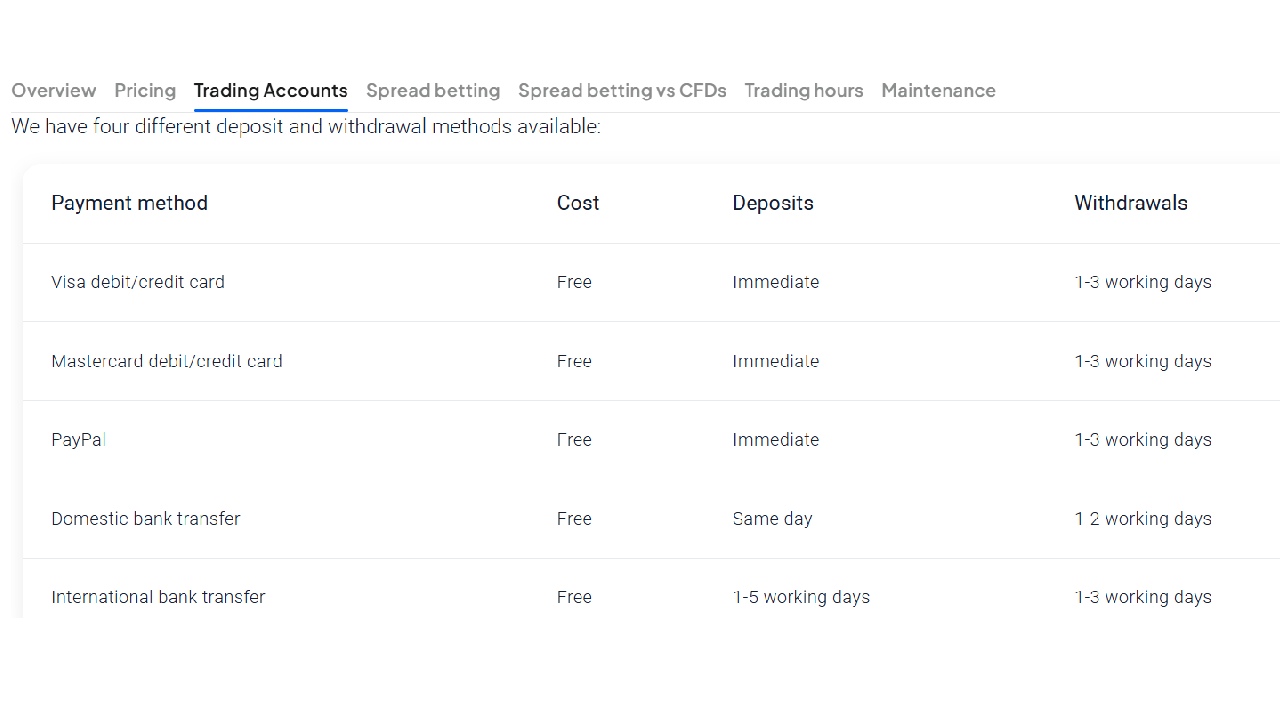Pepperstone has several payment options, such as credit cards and bank transfers, as well as e-wallets including Skrill, PayPal, and Neteller in the UK.