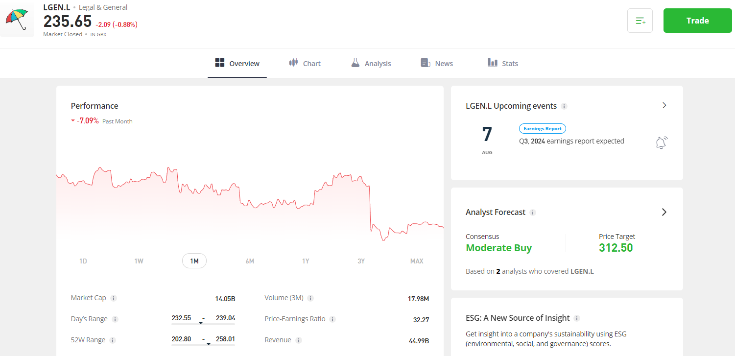 5. Legal & General (LGEN): Steady growth and high dividend yield