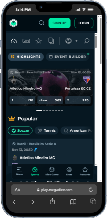 Mega Dice is one of the best betting sites without KYC for in-play betting. Our research shows that the majority of sporting events come with live odds, whether that’s golf, tennis, soccer, ice hockey, or baseball. There’s a comprehensive selection of in-play markets and odds are updated in real-time.
